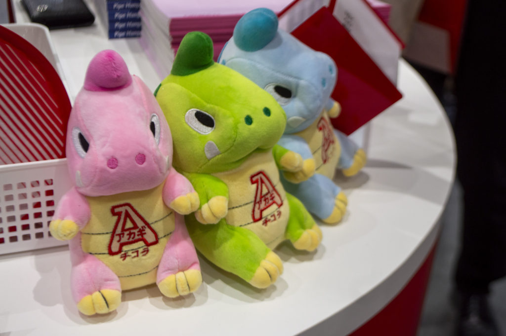 アカギさんのコーナーでは床バンドなどの支持金物について説明をしてもらいぬいぐるみなどもいただきました。3色揃ってます!!支持金物は床の下にあるので基本見えないよね~って会話をしてました!